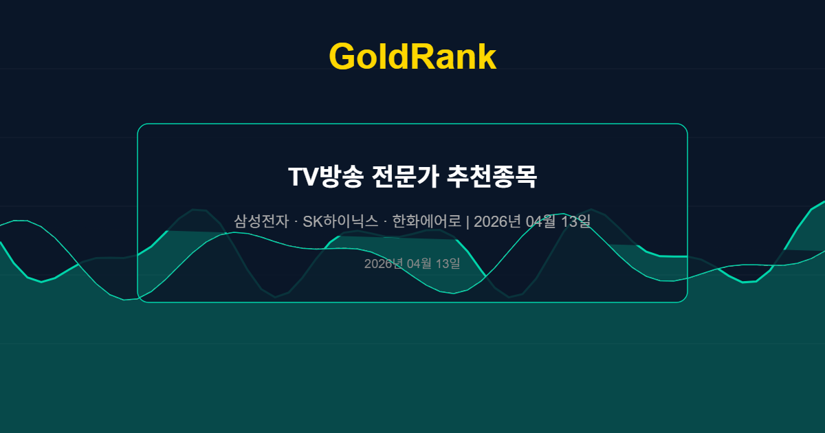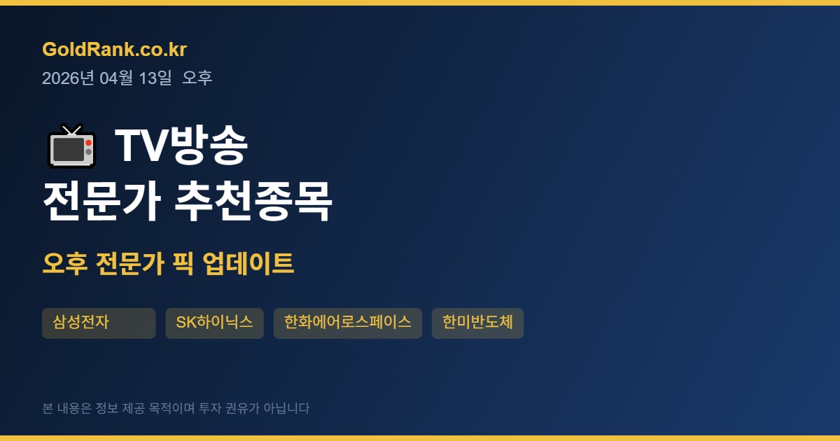 [TV방송 전문가 추천종목] 2026년 04월 13일 주요 전문가 픽 정리