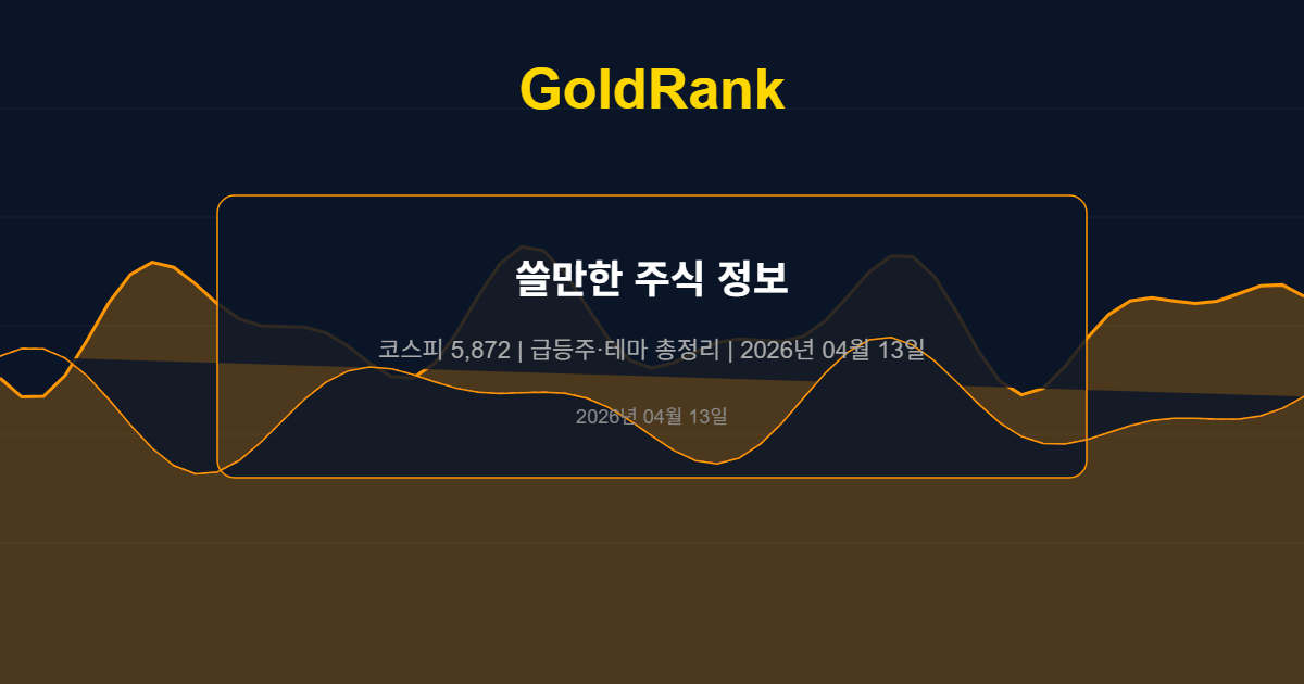 📊 2026년 4월 13일 국내 증시 오후 시황 🔢 지수 현황 지수 최근 확인값 주간 변동 비고 코스피(KOSPI) 5,859p 내외 +8.96% (주간) 4월 9일 기준 5,872p 마감 이후 보합 흐름 코스닥(KOSDAQ) 1,056p 내외 +2.81% (주간) 외국인 매수 유입 지속 SK하이닉스 1,032,000원 +0.49% 4월 13일 장중 확인 🚀 4월 주요 급등주 및 테마 종목명 급등 배경 … 더 읽기