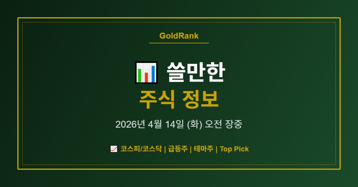 [쓸만한 주식 정보] 2026년 4월 14일 오전 장중 데이터 총정리