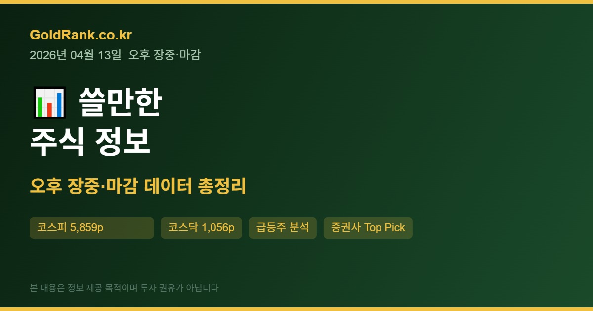 [쓸만한 주식 정보] 2026년 04월 13일 오후 장중·마감 데이터 총정리