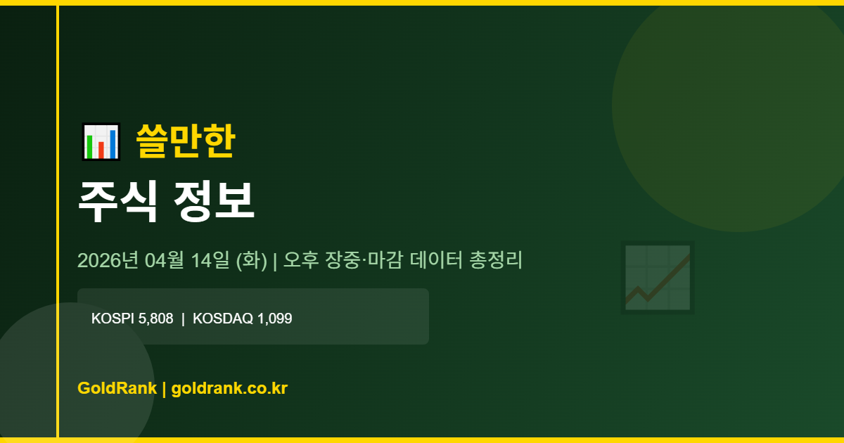 [쓸만한 주식 정보] 2026년 04월 14일 오후 장중·마감 데이터 총정리