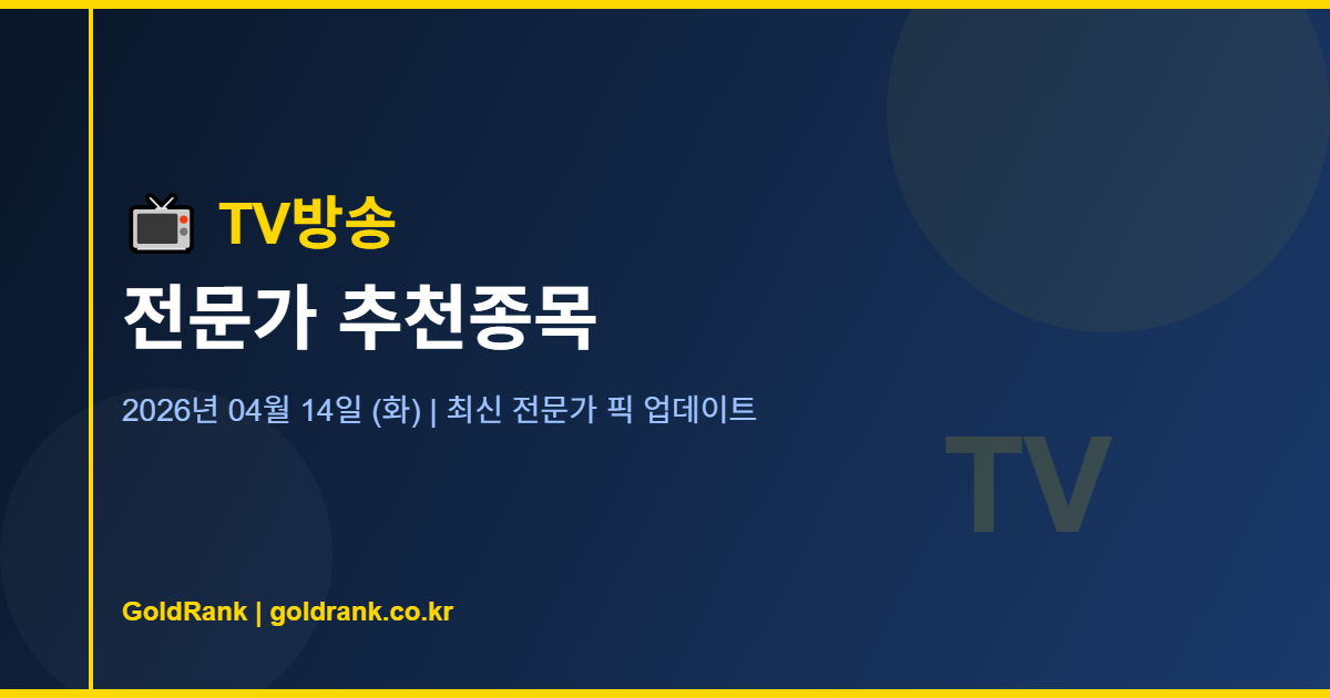 [TV방송 전문가 추천종목] 2026년 4월 14일 오전 전문가 픽 업데이트